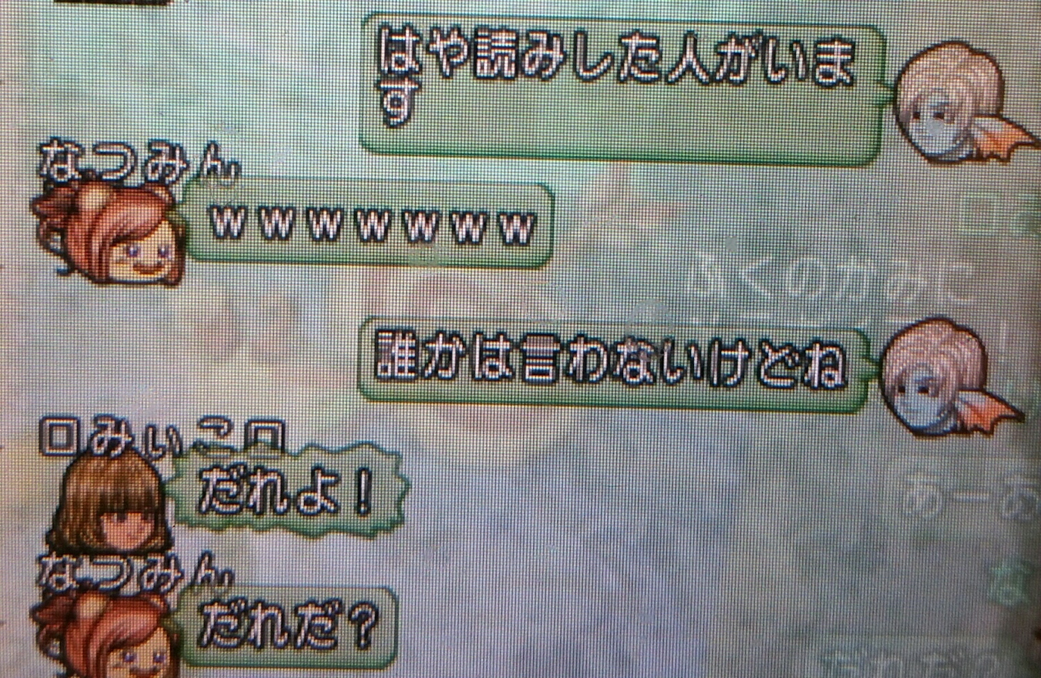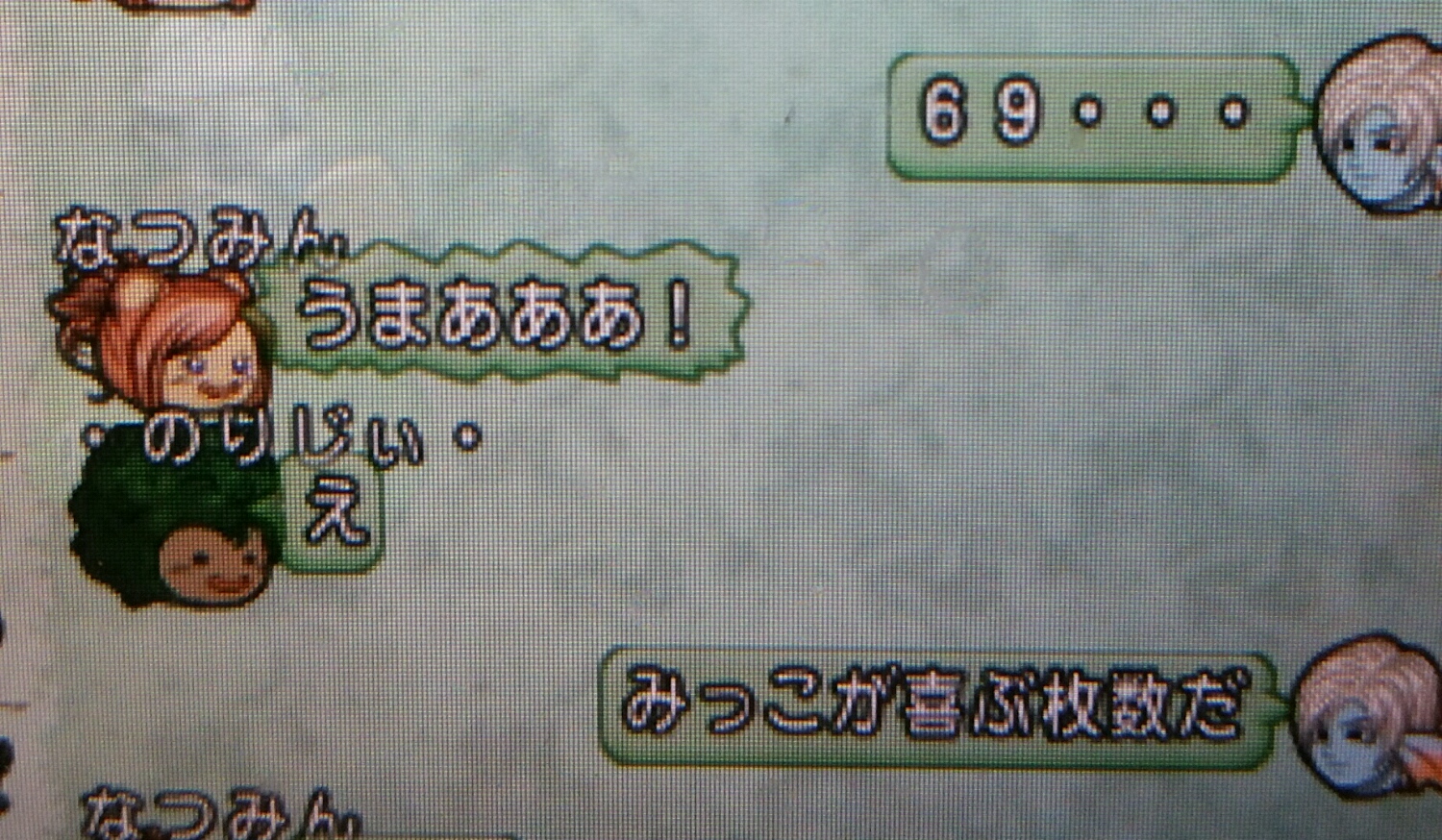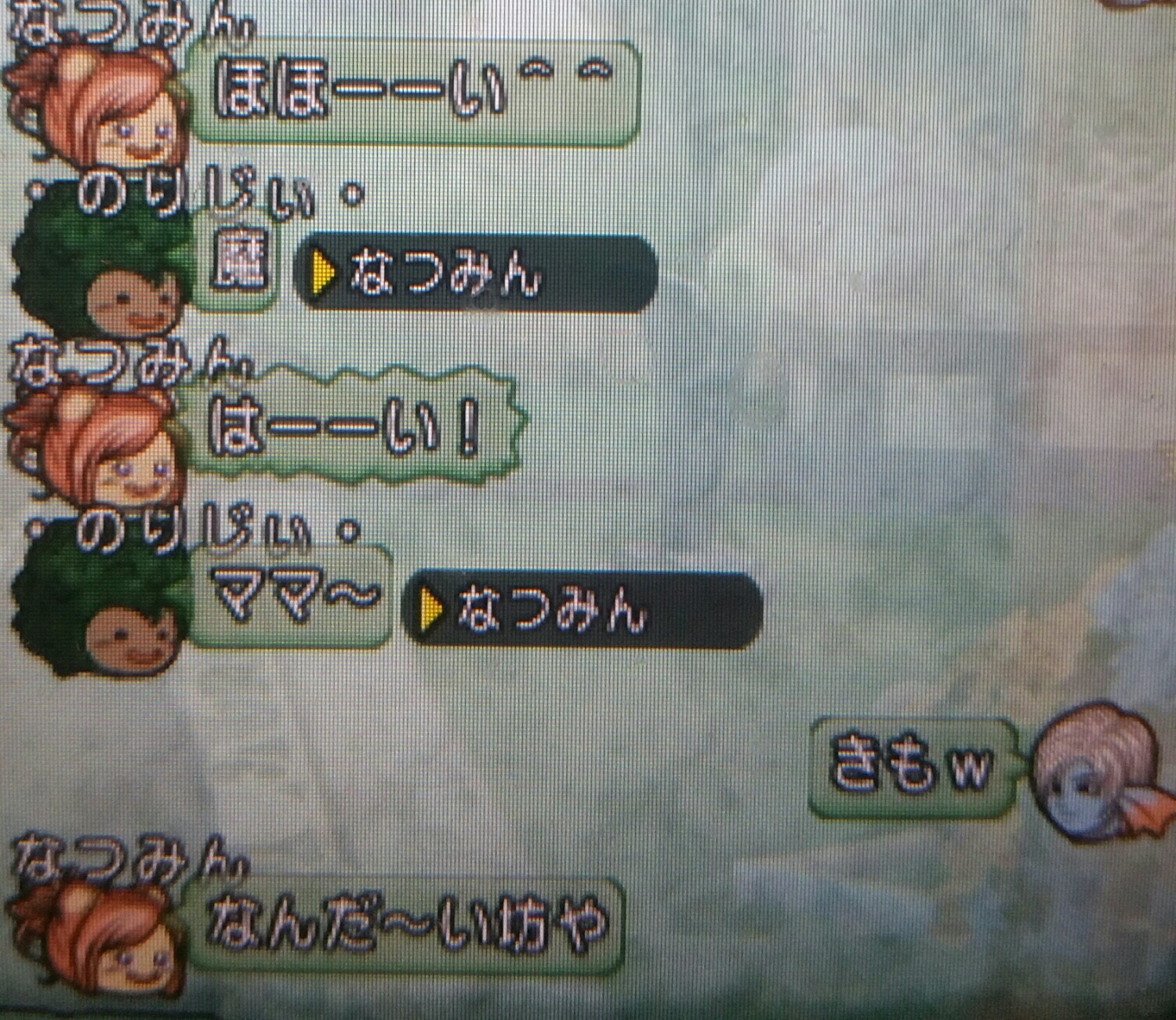 ママーとかわけわからないちゃっとを飛ばすのりじぃですがそこに乗ってあげるなつみんの優しさに全米が泣いたとか泣かなかったとか。