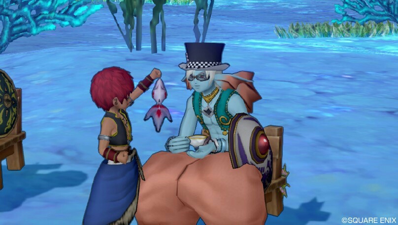 釣り上げた魚を嬉しそうに見せてくるチーメン、でもとらちゃん、それ金魚だわ。