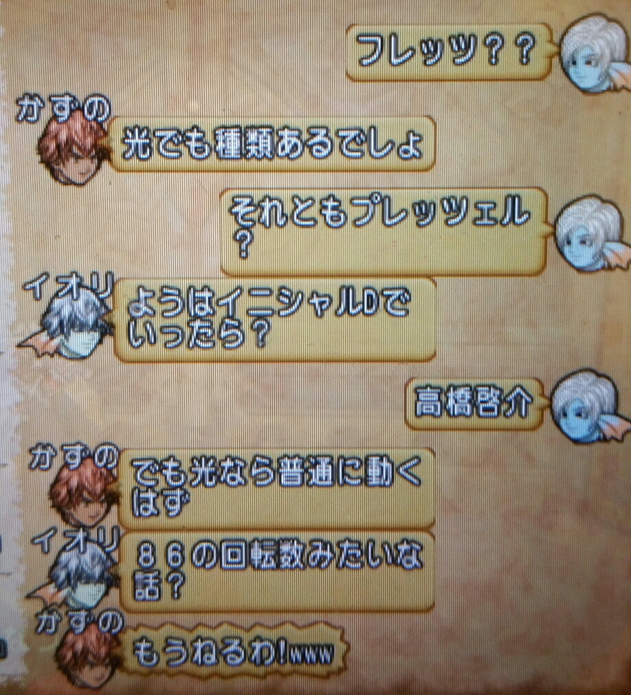 同じ繰り返しだと道中は暇になりがちです、色んな話をして進みます、このときはレアボスをしょうさんいっぱい持っていた為、皆で行こうという話。