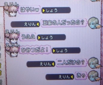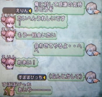 先日マイスイートハニーエンジェルインザスカイのえりんから討伐を狩っているしょうさんのもとへデートのお誘いが来ました、ちょっと前ににぼしとチャットしてて