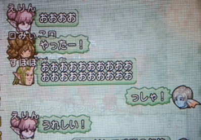 そんな感じで無事にえりんとパーティーを組みまして、やっぱ二人だと緊張しちゃうちょっとまだ初々しい二人ですからね、お互いに一人ずつ仲間を呼び込み4人でパーティーを組みましたとさ。めでたし。