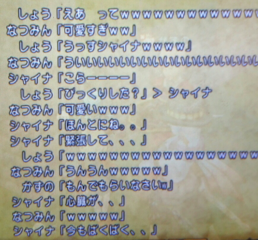 打ち合わせ通りに進みます、ここでチームにシャイナのサブをいれたいとかずのから合図がきました。こっから俺たちは荒れるのです、荒れて荒れて荒らしまくり、シャイナの心を凍りつかせてやるのです!やだぁ、悪い子!きゃっきゃっ!