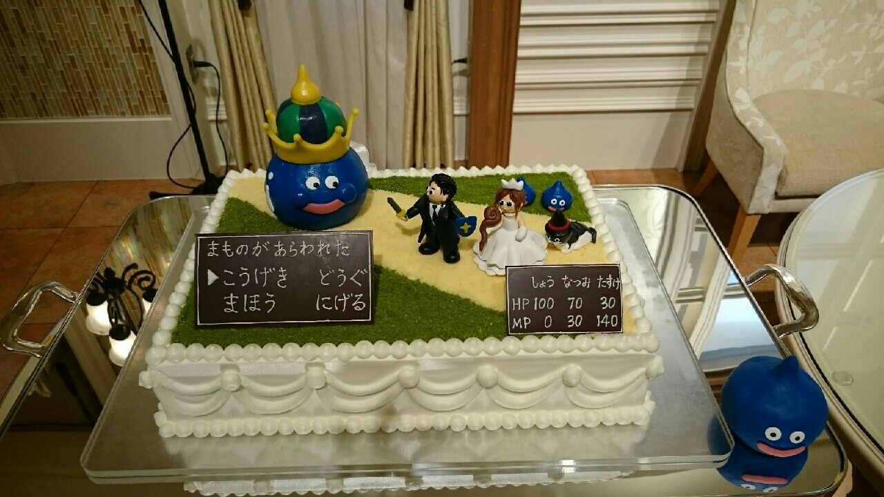 そうそう!あと俺達夫婦は二人ともドラクエをやっているってのもあってウェディングケーキはこんな感じにしたいねって思ってました
