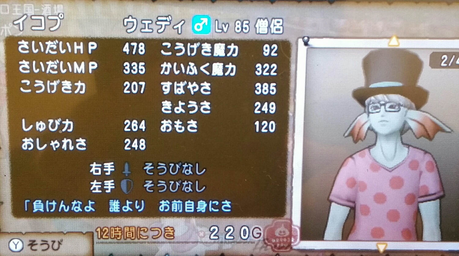 イコ兄の雇いコメントがかっこよかったので雇おうとしたらスティックも盾も持っていませんでした。イコ兄は自分自身に負けたのでしょうかきっとそうでしょう。そっとキャンセルしときました。